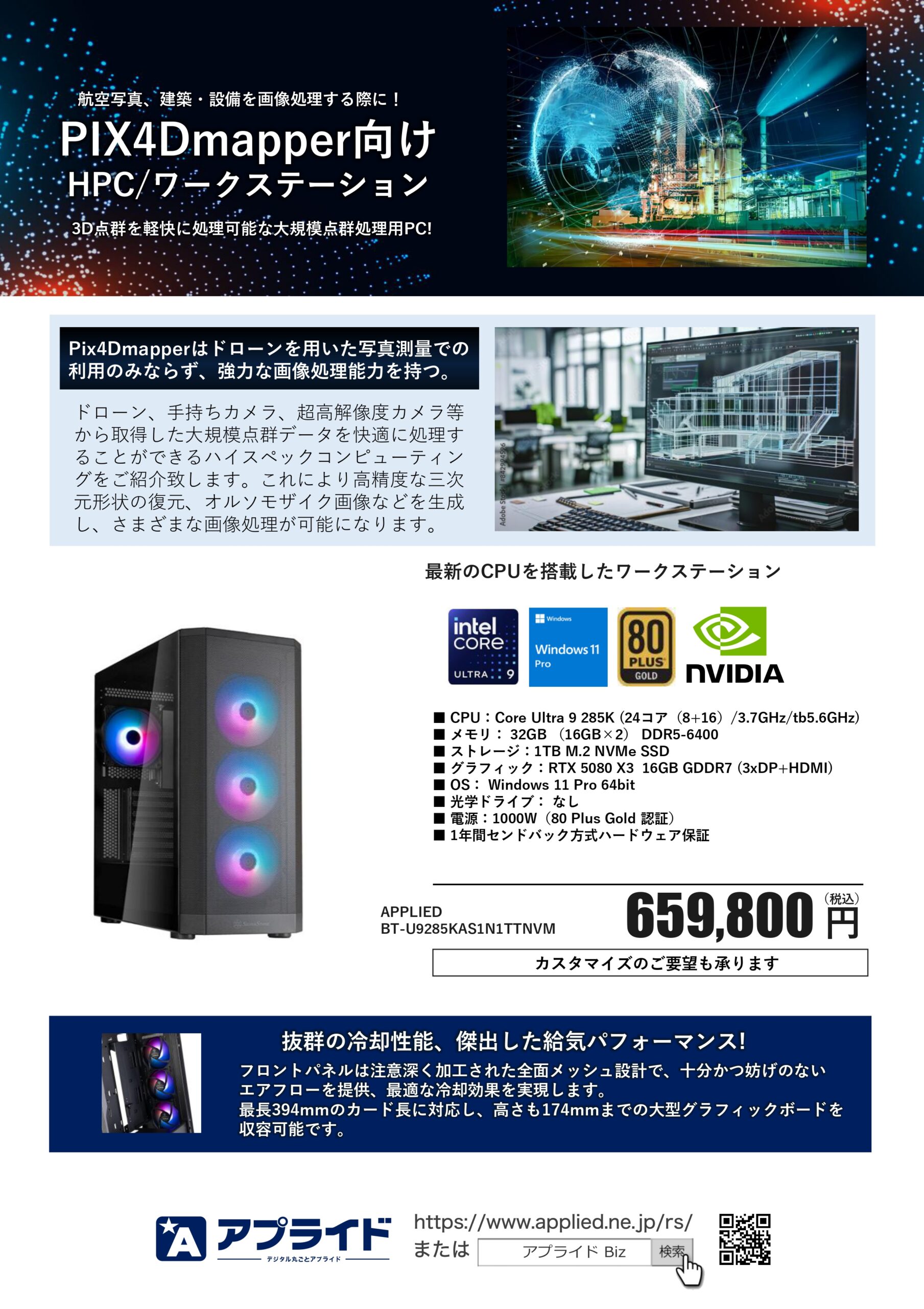 高精度ドローン画像解析ソフト「PIX4Dシリーズ」動作用PC