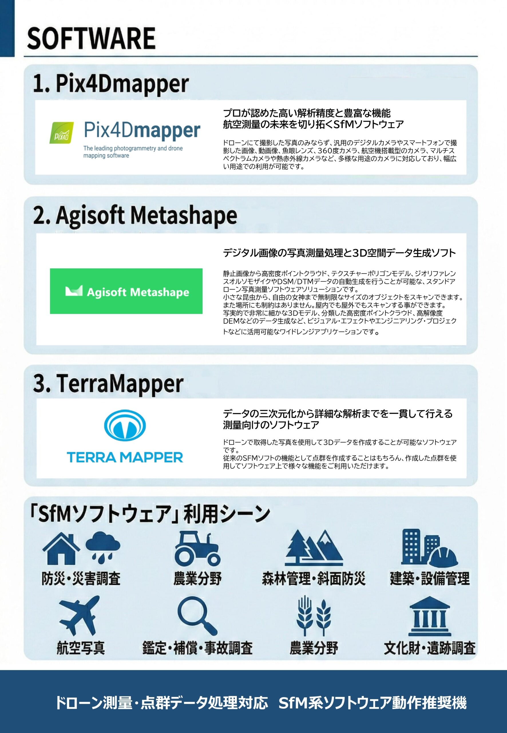 <SOFTWARE>---ドローン測量・点群データ処理対応SfM系ソフトウェア