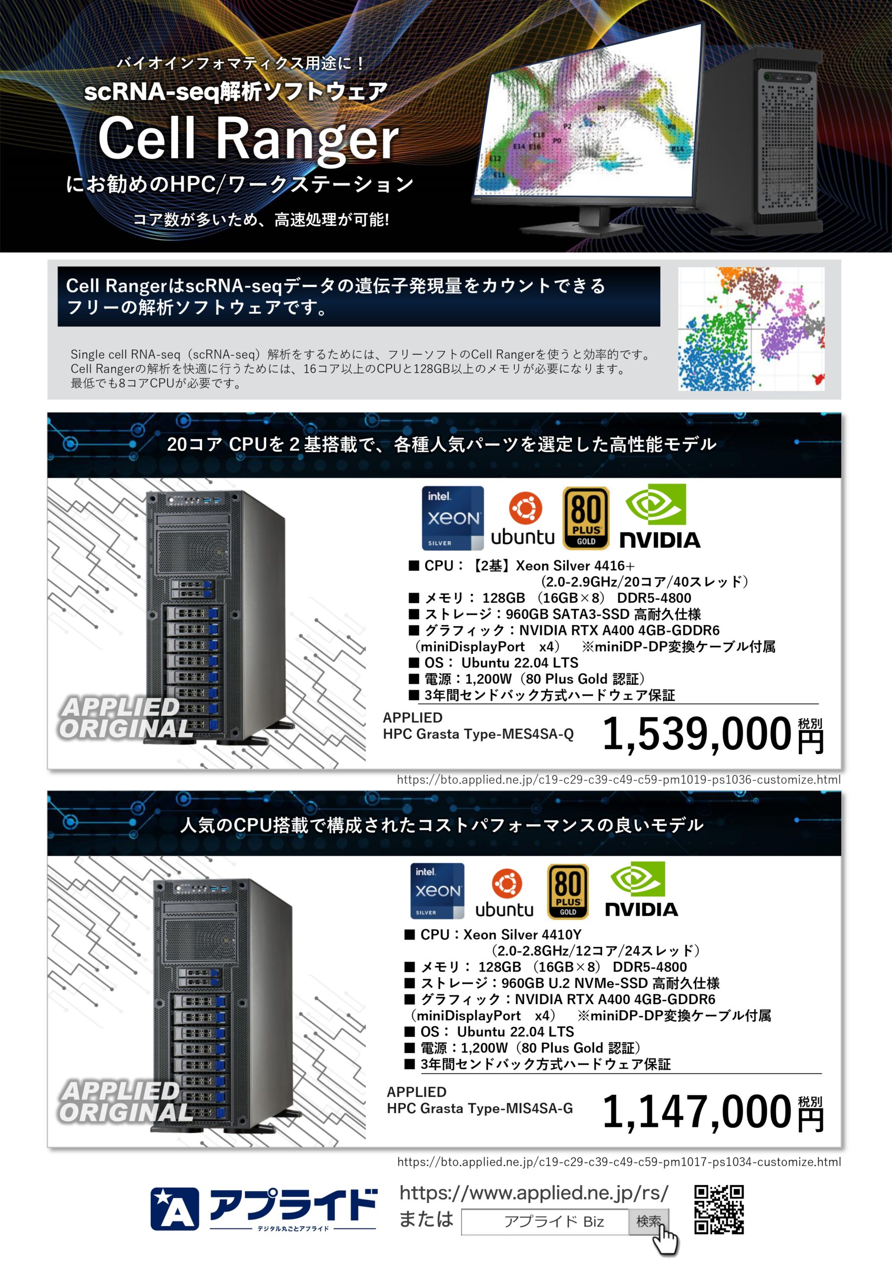 遺伝子発現量をカウント可能な 「Cell Ranger」おすすめワークステーション