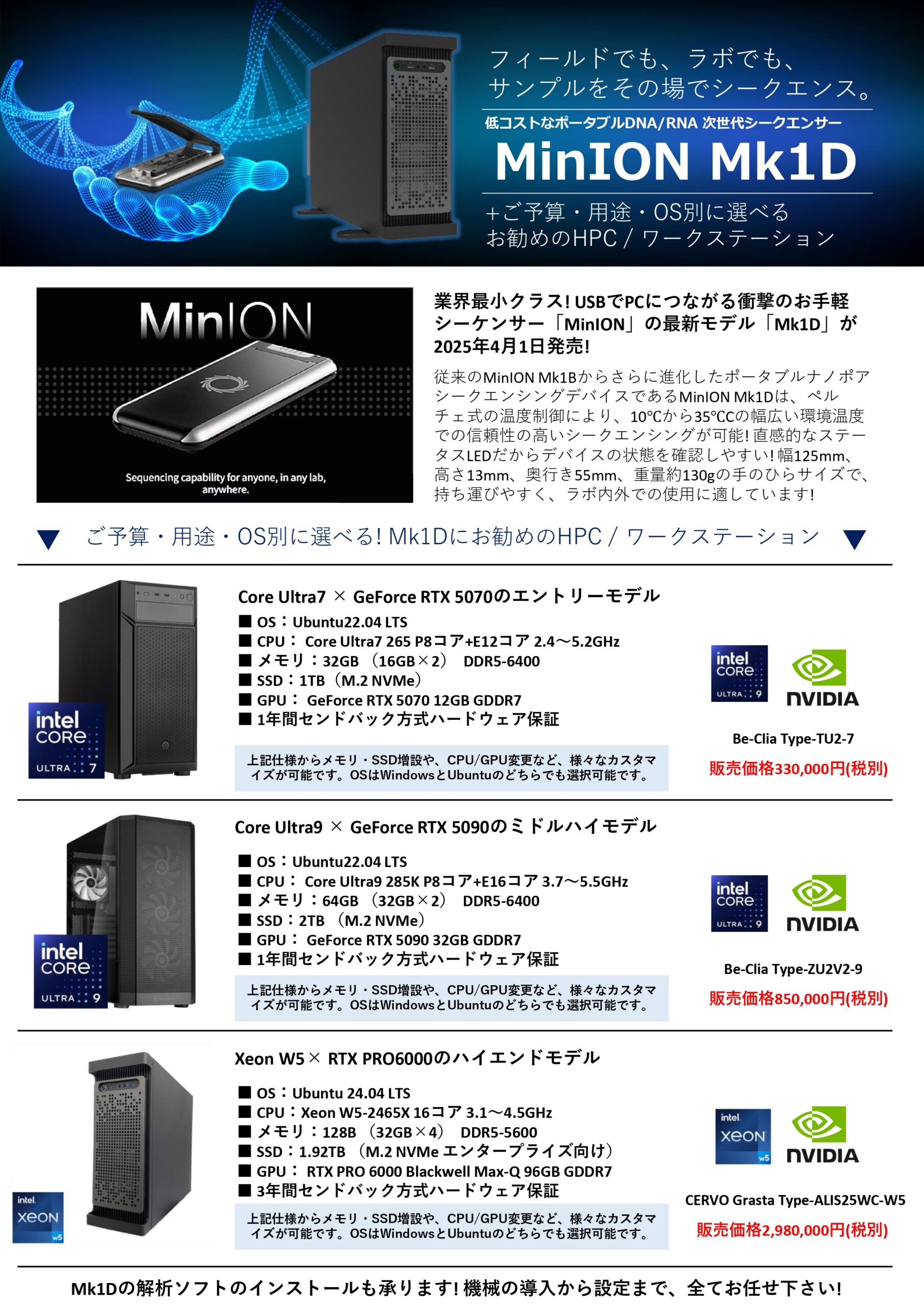 携帯型DNAシーケンサー解析装置「MK1D」動作用PC