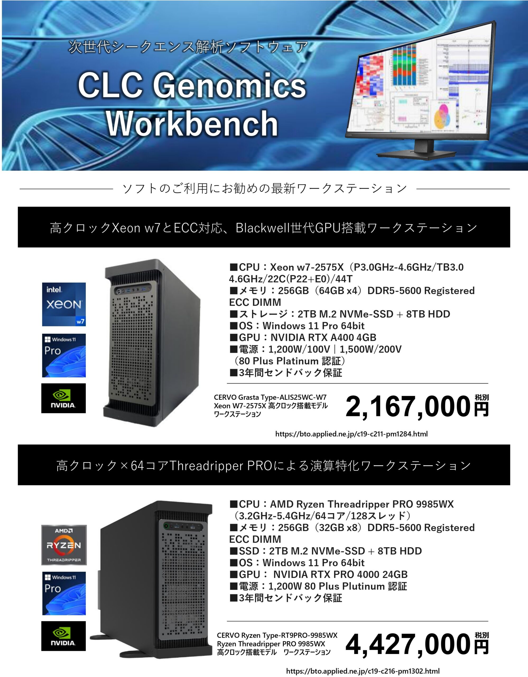 ※アプライドでは、CLC Genomics Workbenchソフトを快適に動作させるためにお勧めの最新ワークステーションをご提案致します。