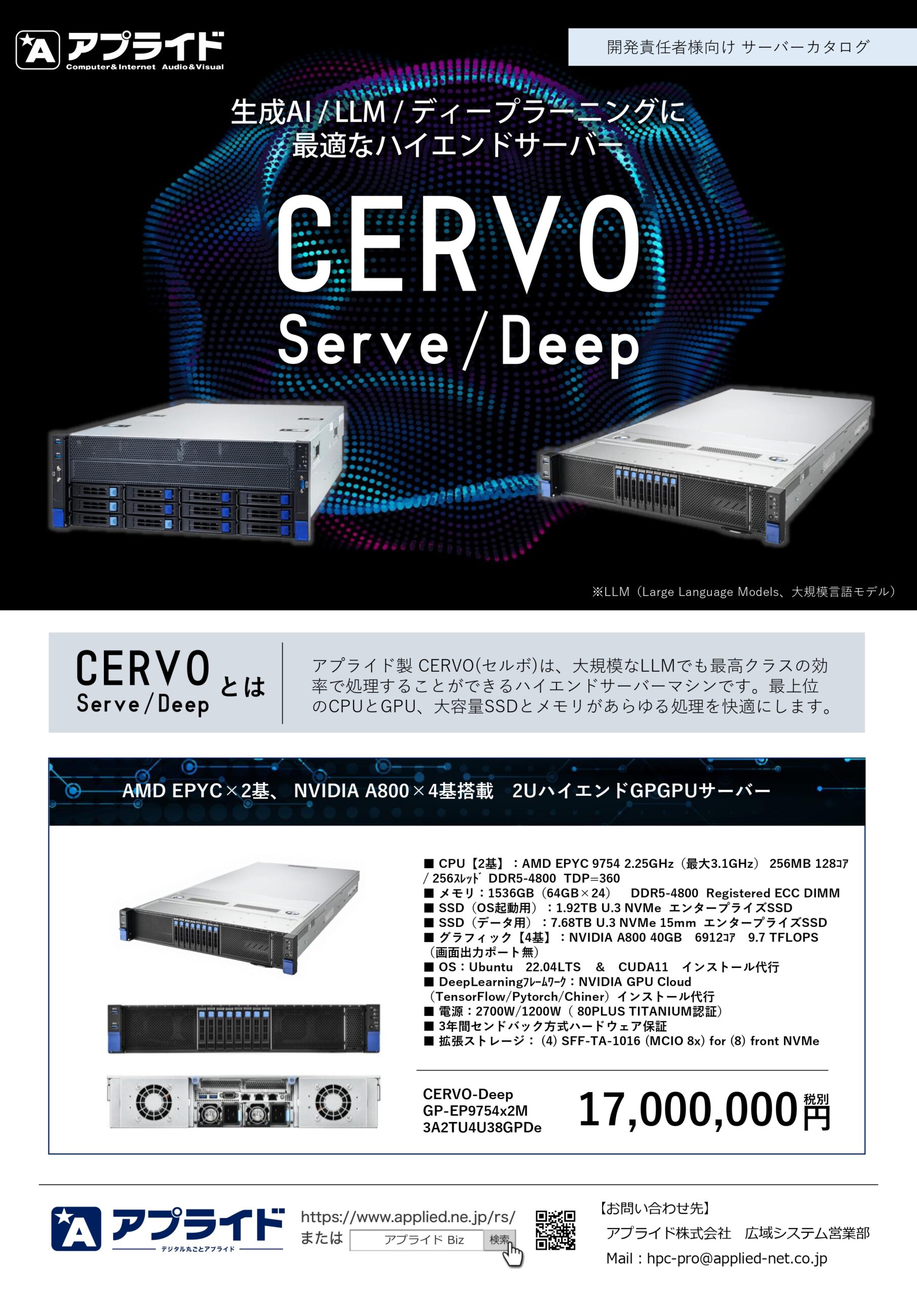 生成AI/LLM/ディープラーニング開発用に最適なラックマウント型高性能ハイエンドサーバー