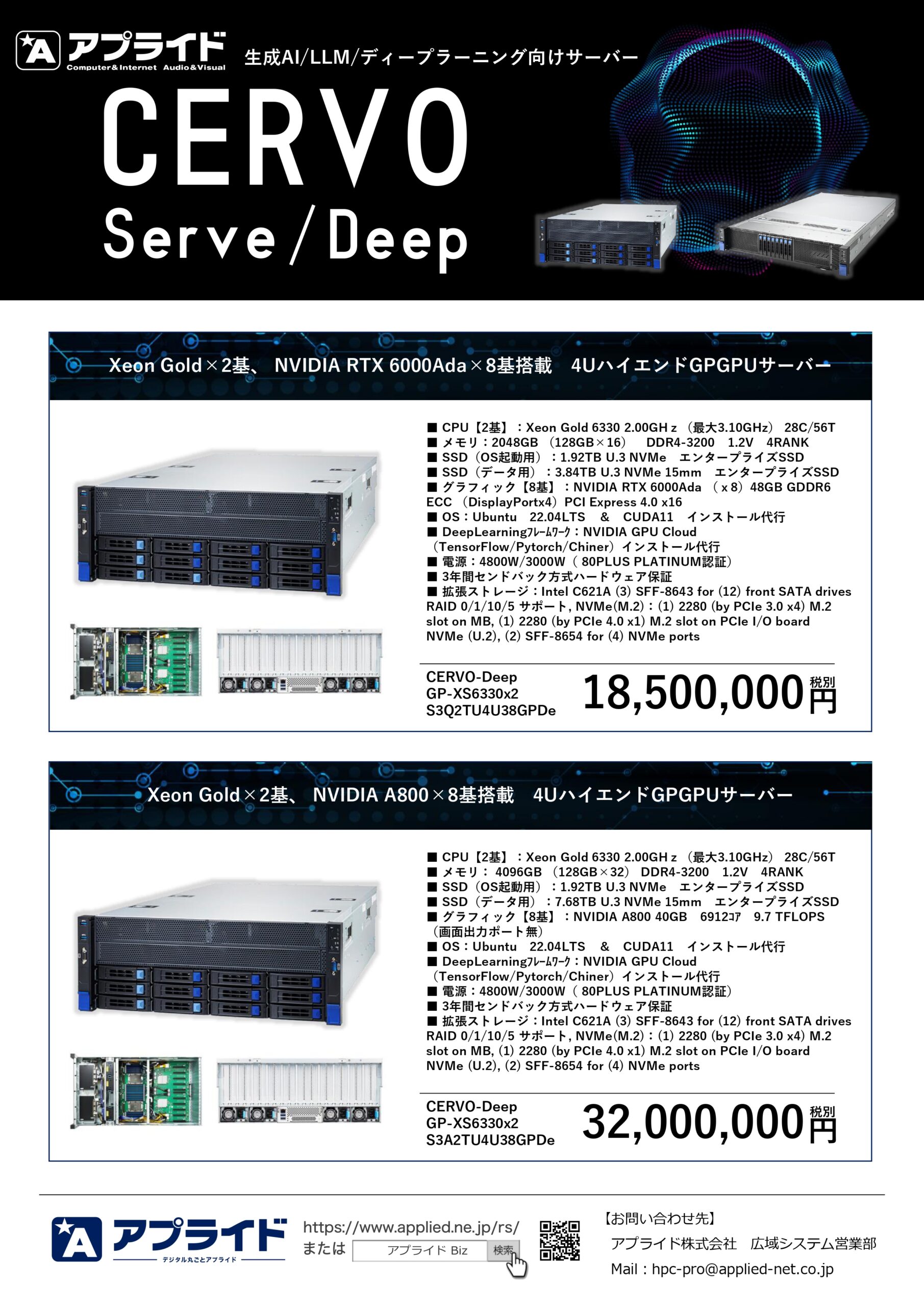 ■Xeon Gold×2基、NVIDIA RTX 6000Ada×8基搭載 4UハイエンドGPGPUサーバー