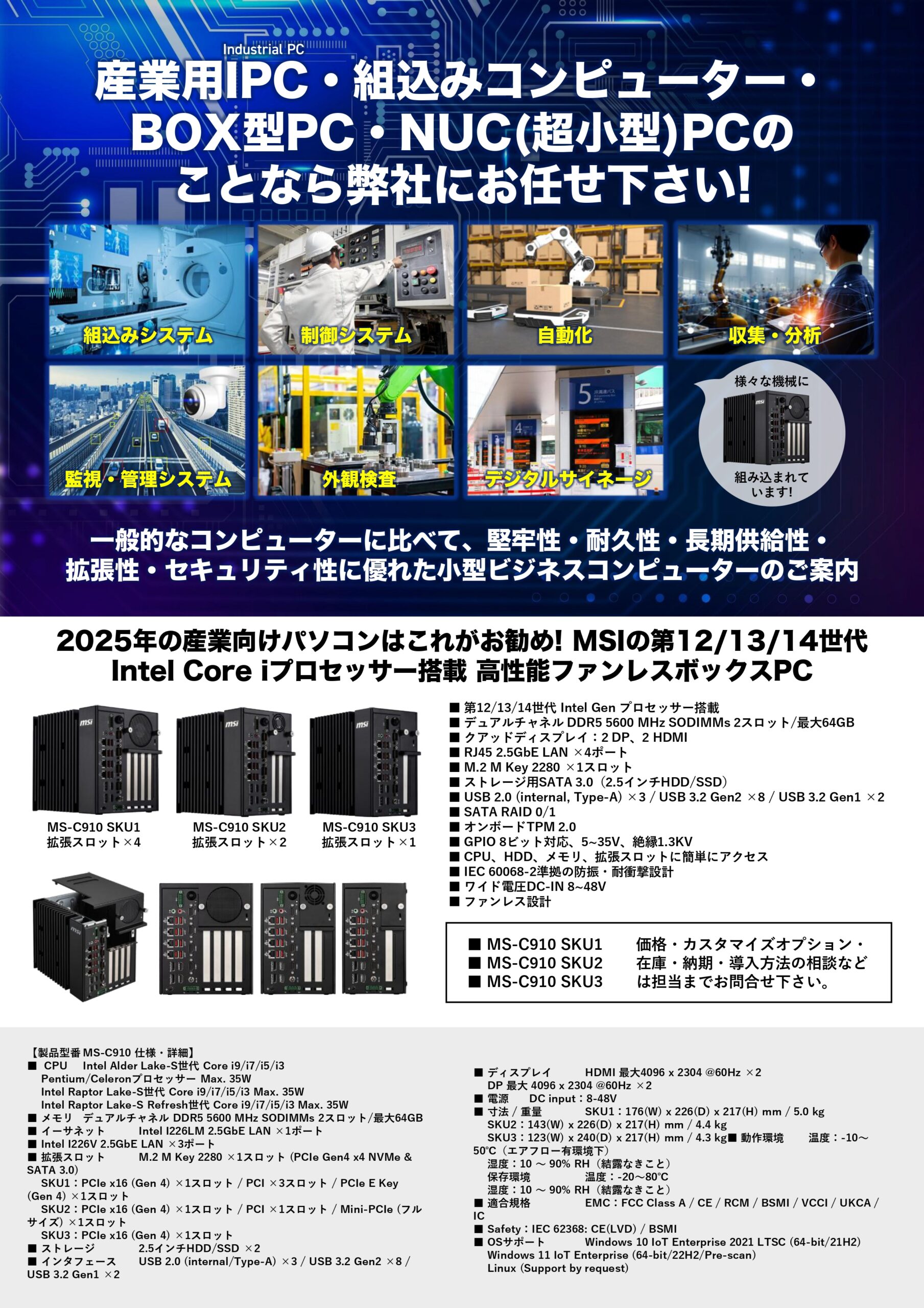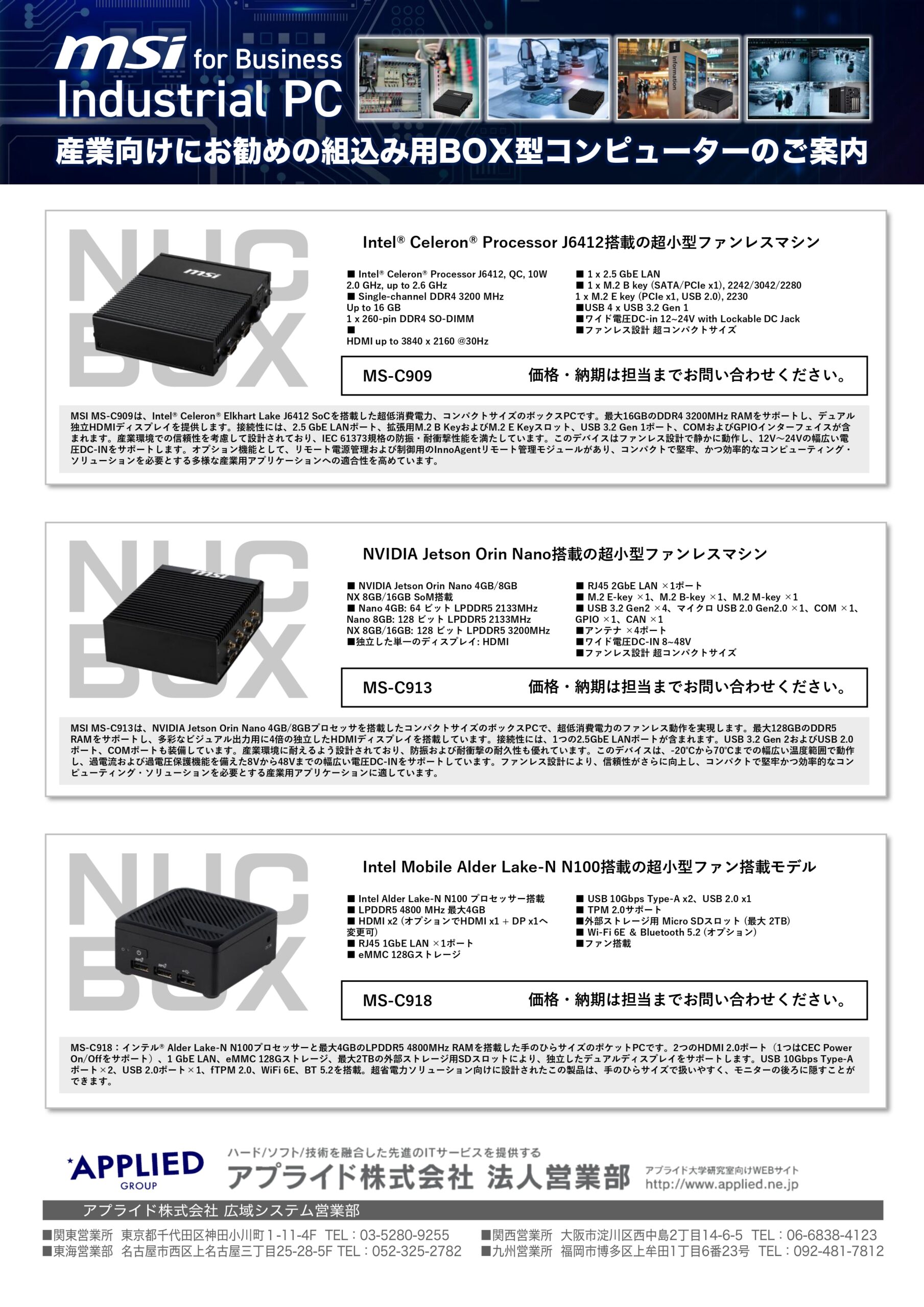 MSI 第12/13/14世代 Intel Core iプロセッサー搭載 高性能ファンレスBOXPC