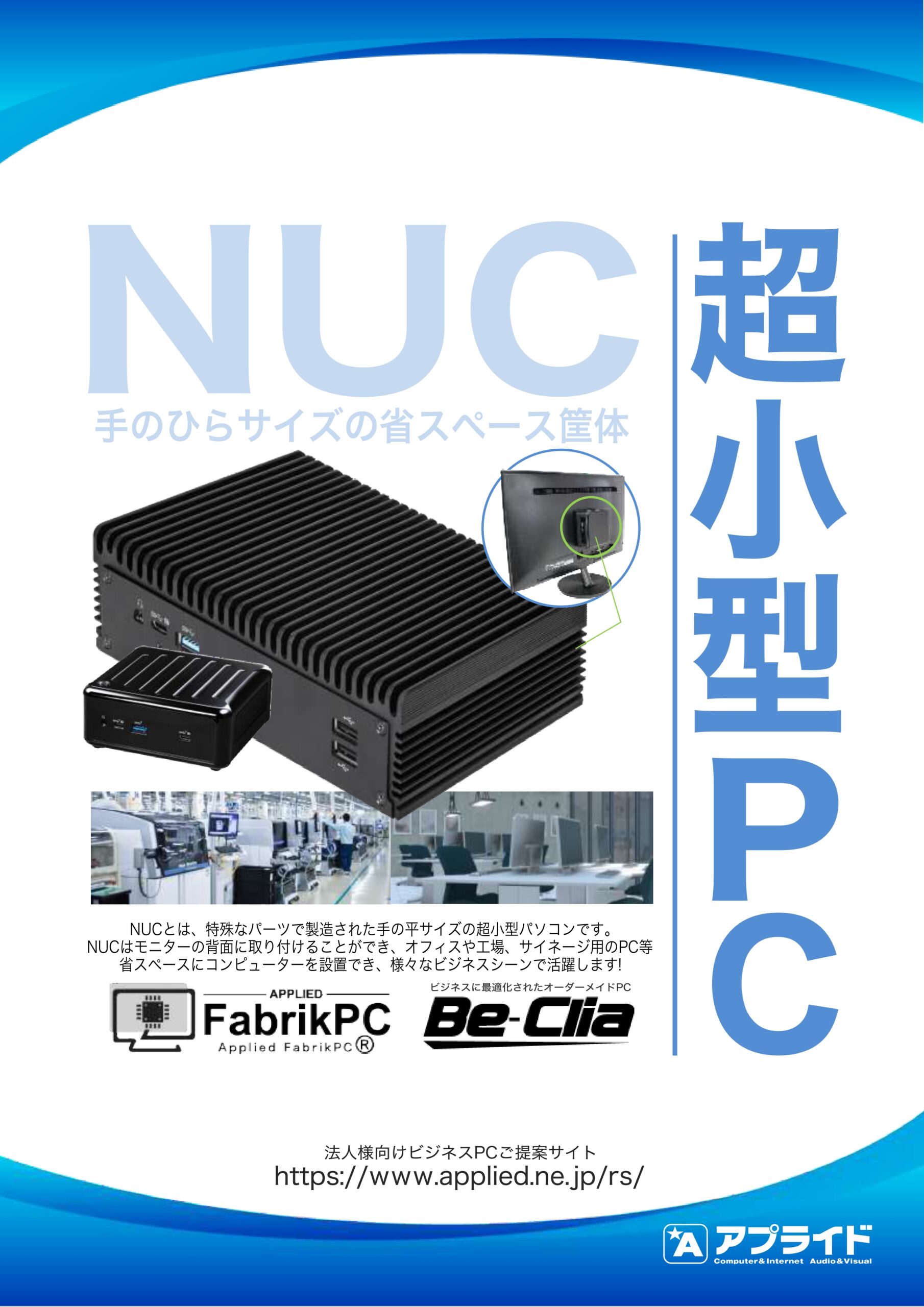 手のひらサイズの省スペース筐体!設置場所を問わないビジネスに好適なPC