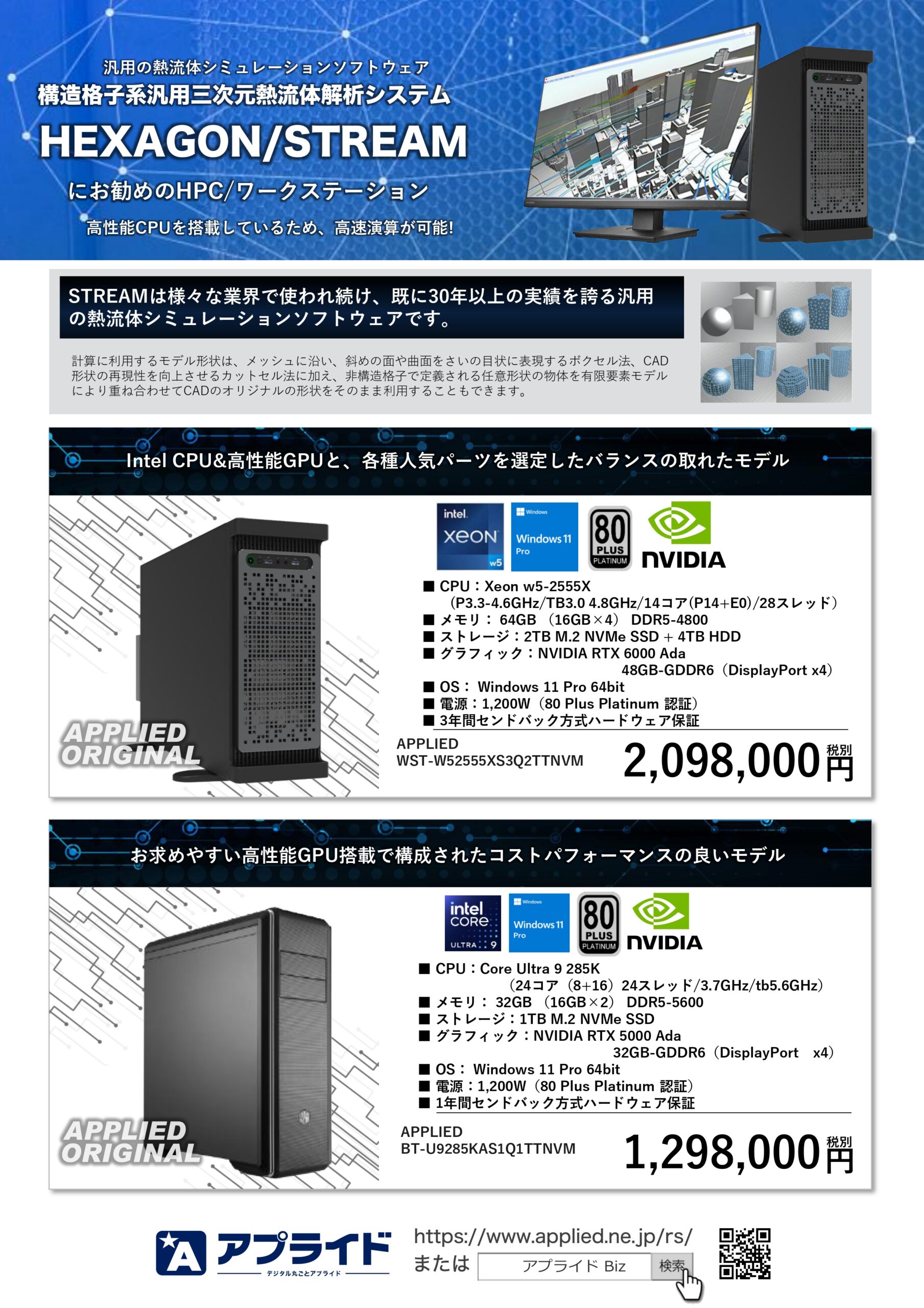 構造格子系汎用三次元熱流体解析システム『Stream』向けPC