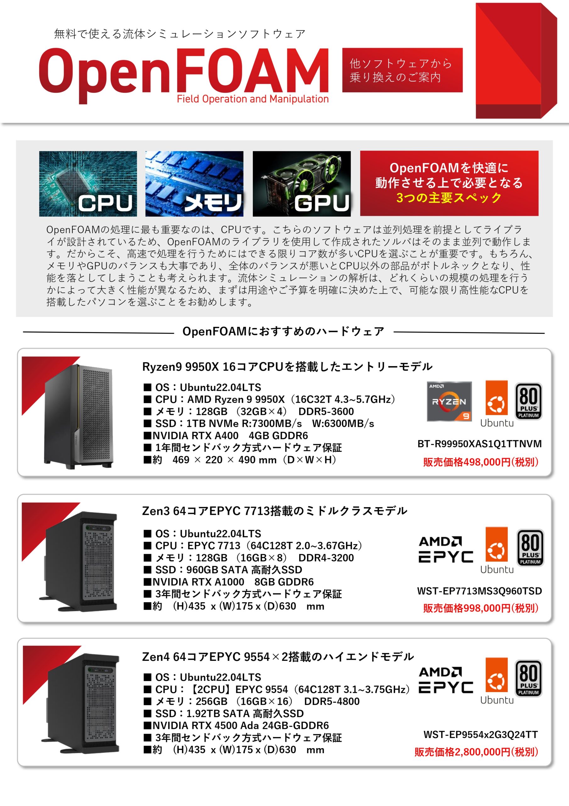 だからこそ、アプライドでは現在無料で使うことができるOpenFOAMの乗り換えを支援しています。今回は、OpenFOAMを利用するに適したハードウェアのご紹介も行います。