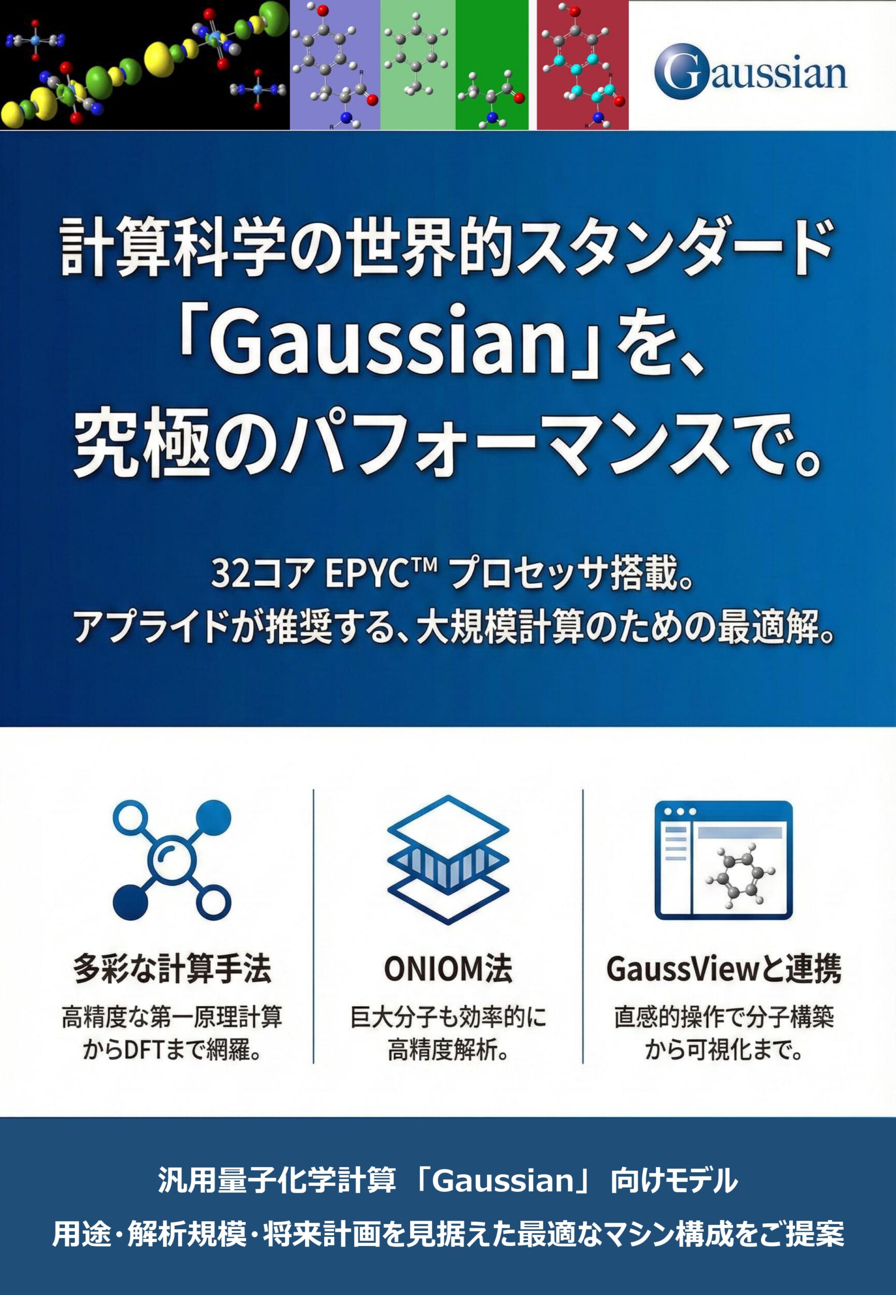 複雑な計算処理を高速かつ安定して行うために選定された、Gaussian向け推奨モデルです。