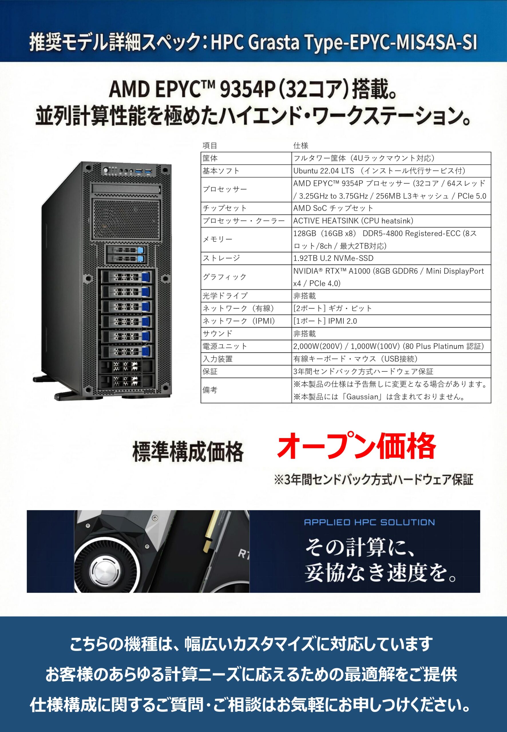 モデル名:HPC Grasta Type-EPYC-MIS4SA-SI