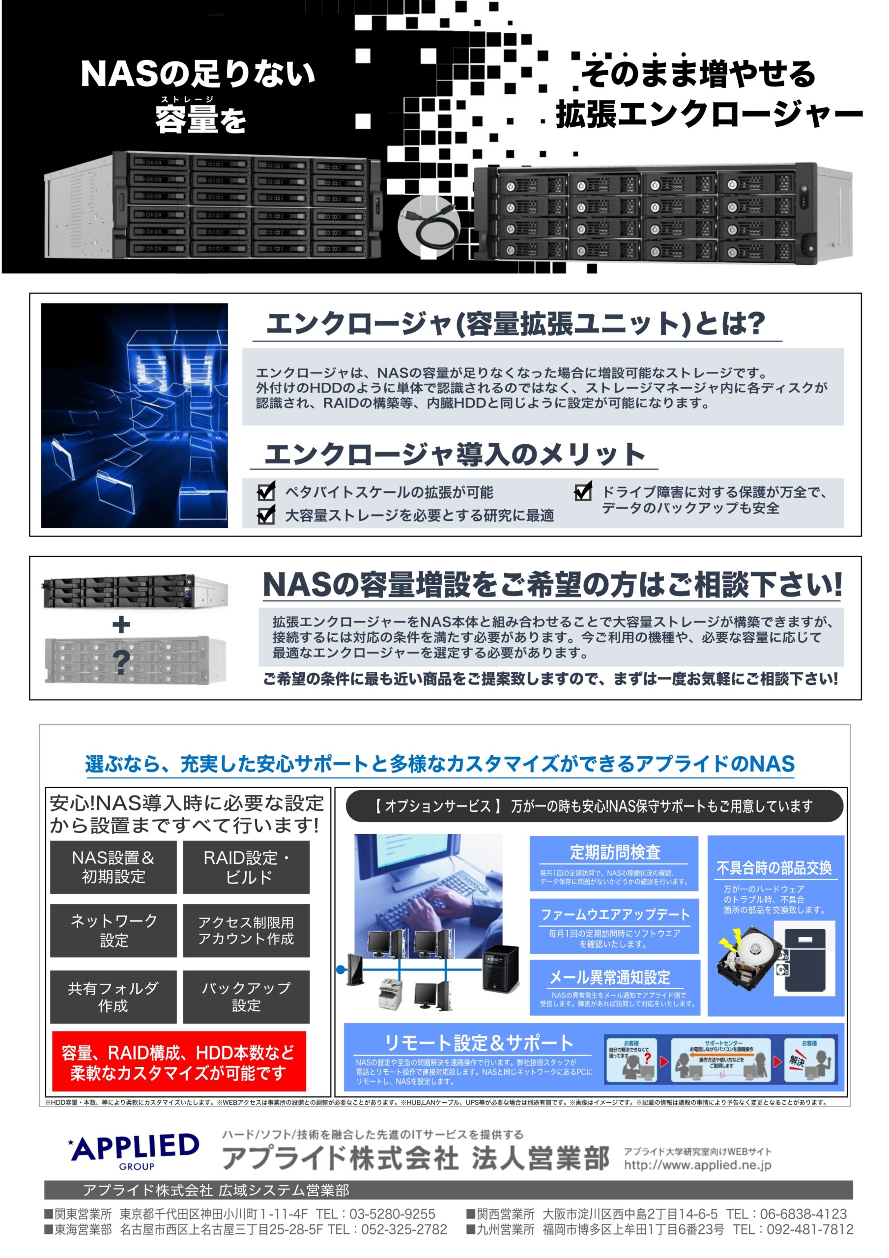 アプライドがお勧めするNASは、データを保存するだけでなく、もしもの時の故障時の対策機能や業務効率を上げる便利機能をいくつも搭載した高性能なNASです。