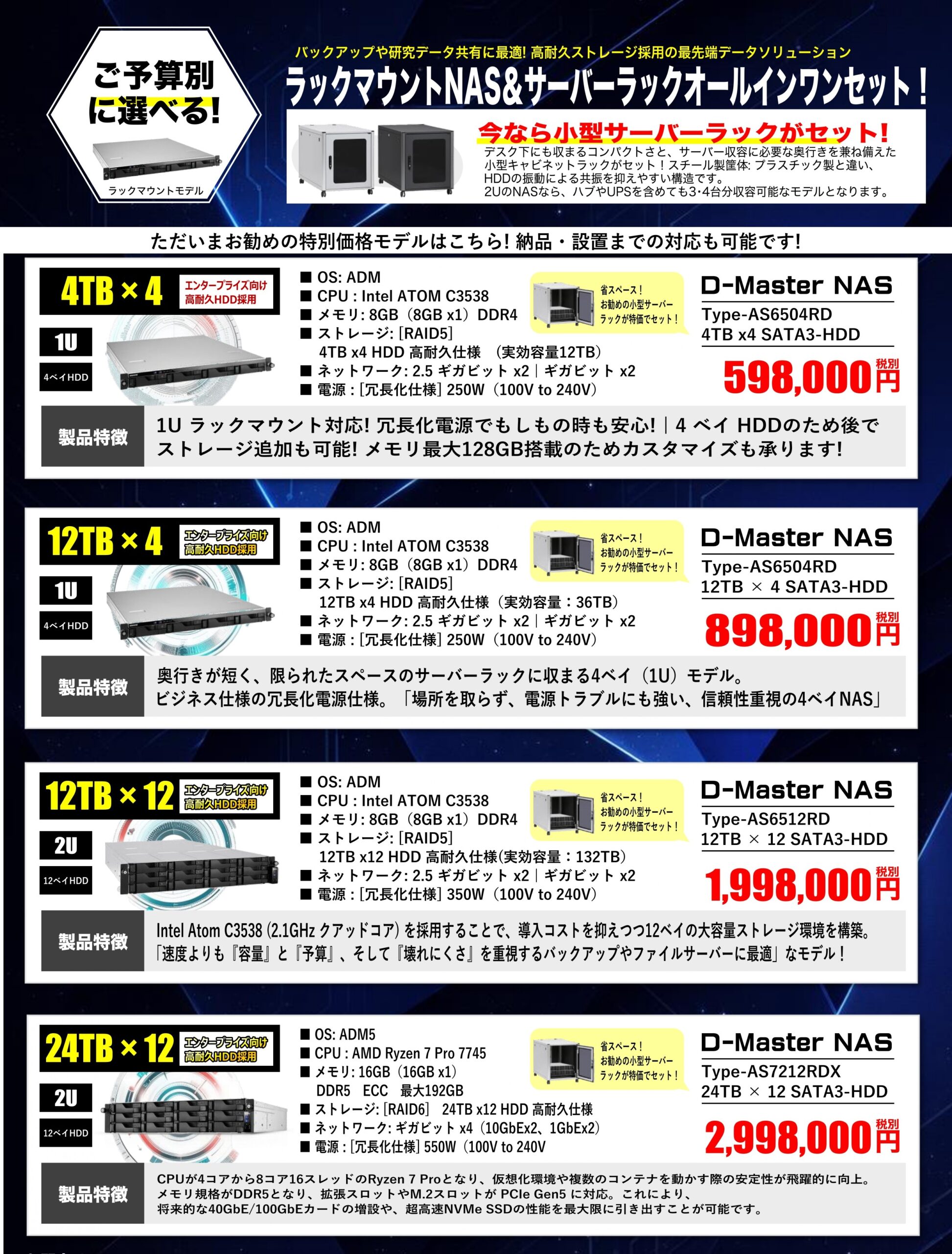 ★今なら省スペースNASをご購入で、小型サーバーラック特価でセット!!
